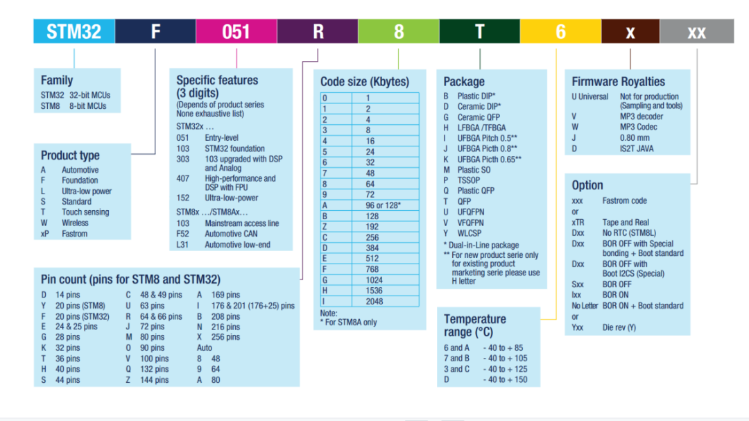 F1 代表了基础型,基于 Cortex-M3 内核,主频为72MHZ,F4 代表了高性能,基于 Cortex-M4 内核,主频 180M。