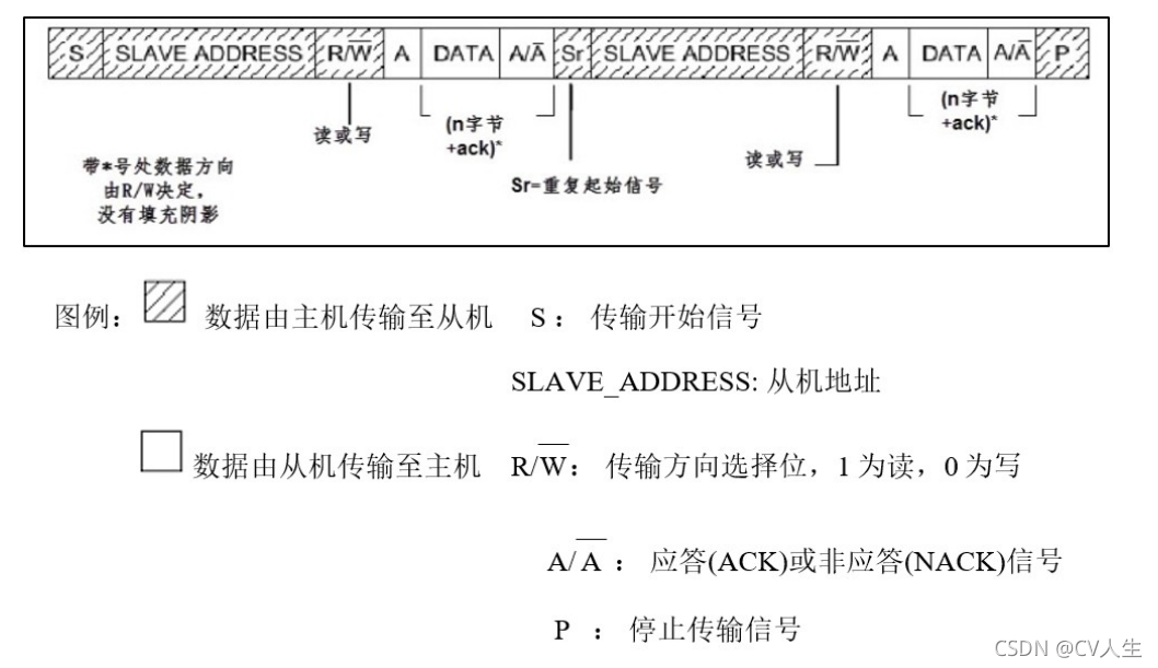 读数据方向时,主机会释放对 SDA 信号线的控制,由从机控制 SDA 信号线,主机接收信号,写 数据方向时,SDA 由主机控制,从机接收信号。