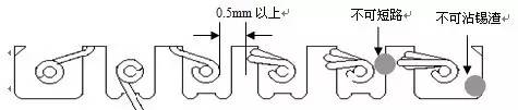 2)点锡适量,焊点须光滑,不可带刺,点锡时间不可太长,以免烧坏胶带;